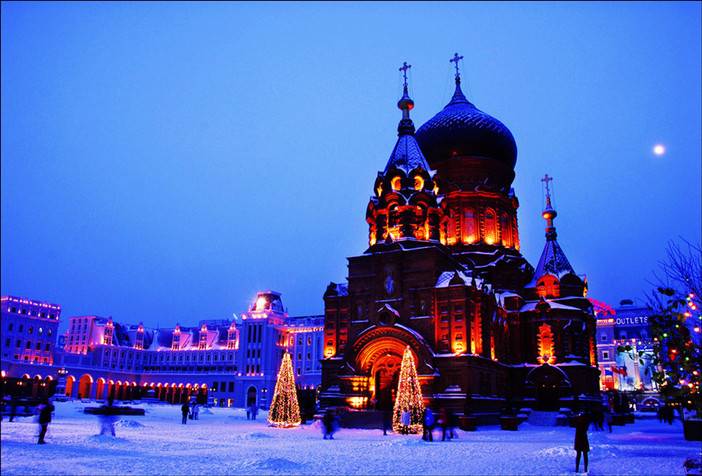 到底是名副其实的冰城,若是没有保暖措施,在极寒的温度下,手机马上就罢工了。所幸只要穿过几个十字路口,便就来到了圣·索菲亚大教堂。哈尔滨有东方莫斯科之称,只是环绕在空旷教堂广场上空的天籁并不是地道的俄罗斯风情,而是大接地气的小苹果。游人拿着玉米挑逗着白鸽,这些快乐的小生灵不怕生人,肆无忌惮地啄食,偶尔竟也会伫立在游人的手臂上,令人忍俊不禁。天上飘着雪花,落在手心,化作水滴,一切如此祥和。我打开随身听,渐渐融于这冰雪天地的氛围,随性漫步,走到哪里都是一番记忆。