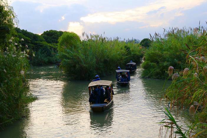 沙家浜风景区位于阳澄湖畔,已建成革命传统教育区、水生植物观赏区、红石民俗文化村、芦苇水陆迷宫、美食购物区等功能区域和竹林幽径、阡陌苇香、柳堤闻浪、隐湖问渔、双莲水暖等一批景点。平心而论若不是京剧《沙家浜》的深远影响,这里就是普通的江南鱼米之乡,作为湿地或乡村游更显贴切。沙家浜风景区,以浩荡的芦苇、宽阔的水域构成自然绿色生态的主基调,“芦花放,稻谷香,岸柳成行”一派安然恬静的气象。
