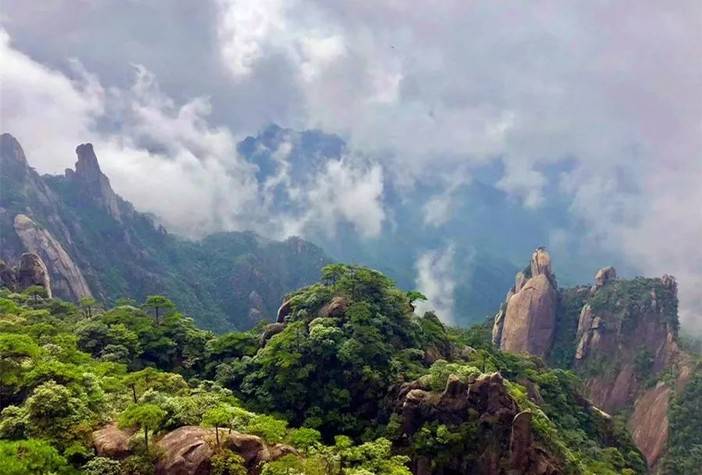 三清山过去又叫少华山,位于江西省上饶市玉山县与德兴市交界处。主体地处怀玉山脉腹地,山势是东、南、西三面陡峻,北面稍缓。因玉京、玉虚、玉华三座山峰宛如道教玉清、上清、太清三位尊神列坐山巅而得名。其中玉京峰为最高,海拔1819.9米,是江西第五高峰和怀玉山脉的最高峰,也是信江的源头。自古享有“清绝尘嚣天下无双福地,高凌云汉江南第一仙峰”盛誉的三清山,一直是游客与诗人神往的地方。