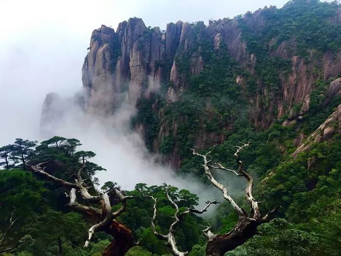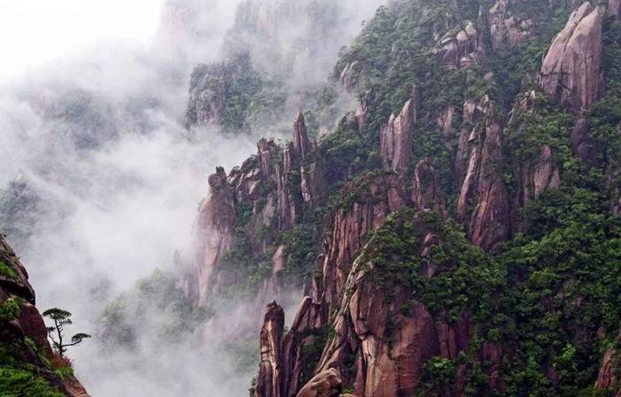 三清山的云雾来去无常,聚散无信,是呼啸而来,飘忽而去。若是山谷间有雾气沿着山坡丝丝缕缕的向上爬升,不一会就变成万千条白蛇一齐向山头涌来,转瞬间就填满了峡谷沟壑,遮盖了群山峻岭,天地间便成了白茫茫的一片混沌世界。不消片时,云雾又悄无声息的退去,那俏石秀峰,苍松翠柏又渐行渐近全部走入你的眼里,似乎经过甘霖仙露的滋润与洗礼,越加的生机勃勃,青翠欲滴,娇艳可人了。此时俯瞰大峡谷,峡谷幽深,震人心魄一种目眩的感觉,仿佛谷底藏有百万雄兵,只待旌旗招展时再度卷土重来。每当云起云散的时候就是拍摄山川盛景的最佳时刻,此时的三清山坚毅雄伟与婉约柔情完美融合为一体,是风情万种的柔美,是气度从容的静美,是仙风道骨的大美,让人百看不厌,令人流连忘返,是天地生成的瑶台仙境。这种令人一诵叁叹的体验,非身临其境是无法体味的。难怪有人说:三清山有泰山之雄伟、华山之峻峭、庐山之清幽、衡山之烟云的磅礴气势,在我看来,如此评价恰如其分!